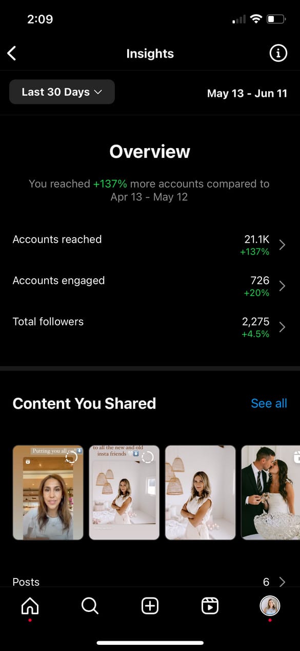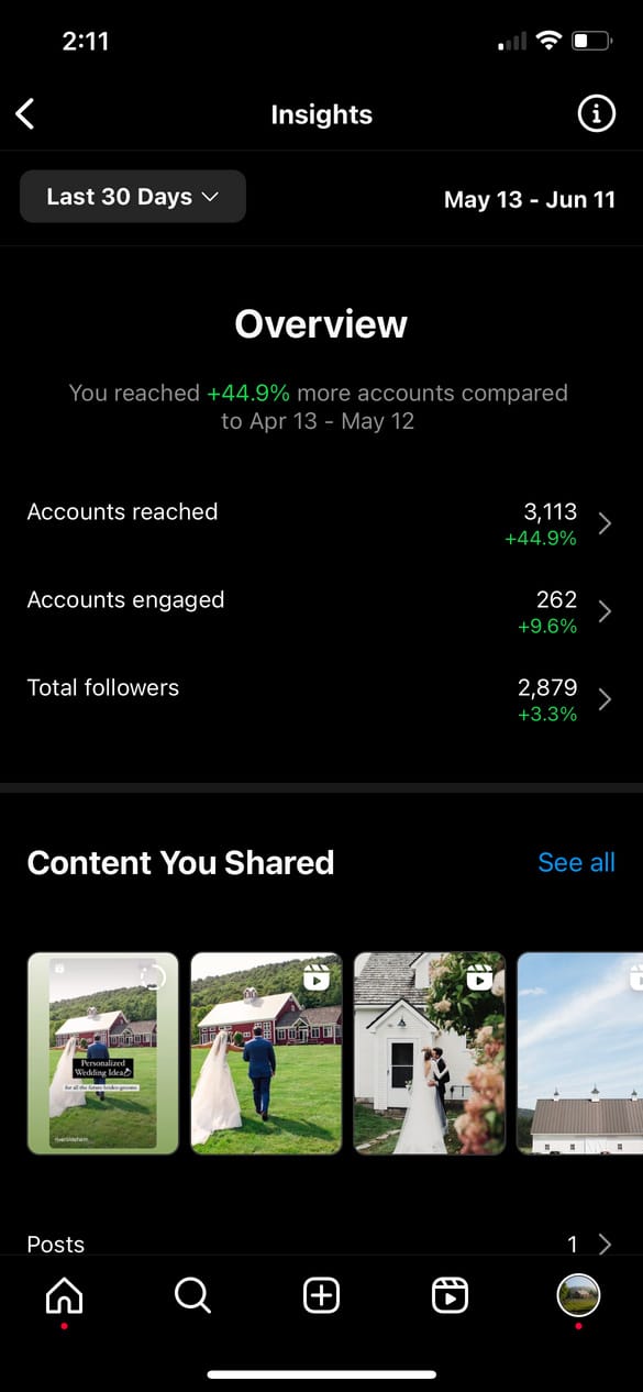 The Colonial at Sunset is an exquisite wedding venue in Tampa Florida, and I started their Instagram from scratch about a two months ago! Through daily networking, on-brand content, and perfectly timed posts, the account is able to consistently grow and reach the right audience. Check out their Instagram here.
