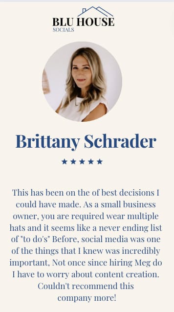 Hi! My name is Megan Merola, owner of Bluhouse socials. After seeing just how powerful of a tool social media can be for a brand’s success, I made it my mission to share it with the businesses of the world.